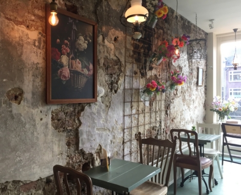 Het idee was net zo simpel als creatief. “We wilden de uitstraling van een oude huiskamer, van Meneer Peer (lekker makkelijk te onthouden), die er nu even niet is. Hij is naar Frankrijk of even vissen, maar je kunt wel in zijn huis terecht”, vertelt Floor. En dat kan voor ontbijt, lunch en een wijntje met borrelplateau.